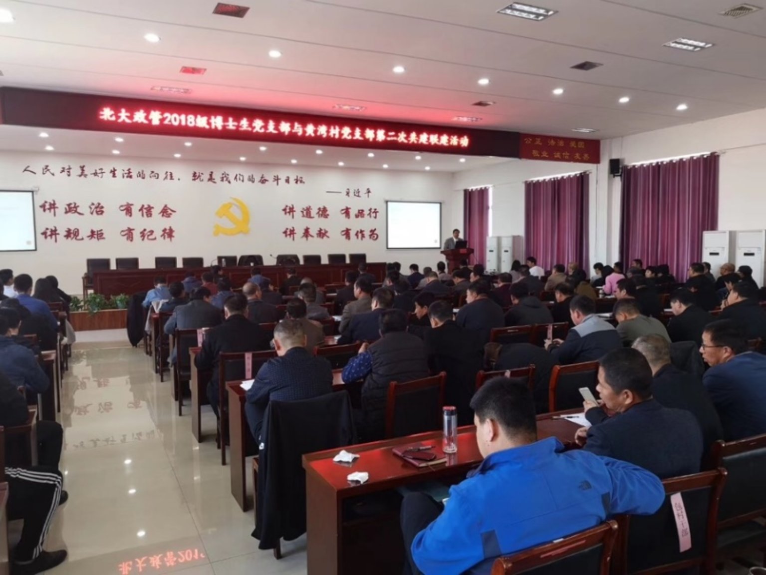 2019年3月23日,北京大学政府管理学院2018级博士生党支部与河北雄县黄湾村党支部联建活动在黄湾村举行,这也是学院“扣好人生第一粒扣子”主题教育系列活动之一。2018级博士班班主任何增科教授,团委书记闫立佳老师带领20余名学生党员参加了活动。来自外国语学院、法学院、信息管理系的辅导员老师和学生党支书也应邀参与其中。