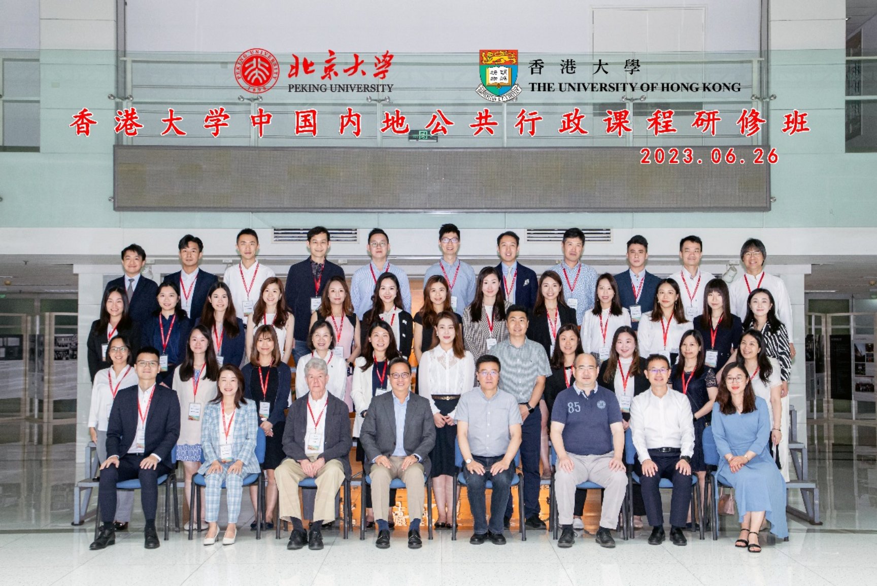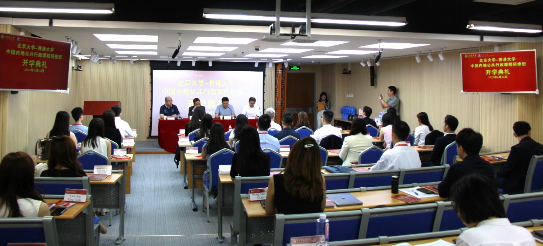 2023年6月26日,由香港大学政治与公共行政学系和北京大学政府管理学院共同主办的“北京大学——香港大学中国内地公共行政课程研修班”在北京大学政府管理学院正式开班,来自香港大学MPA、DPA共计35名学员参加学习。香港大学政治与公共行政学系主任林维峯,北京大学政府管理学院院长燕继荣等领导和老师出席开学典礼,开学典礼由北京大学政府管理学院副院长陆军主持。