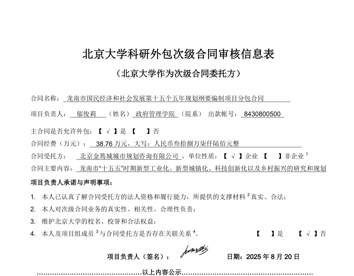 附件:北京大学科研外包次级合同审核信息表
