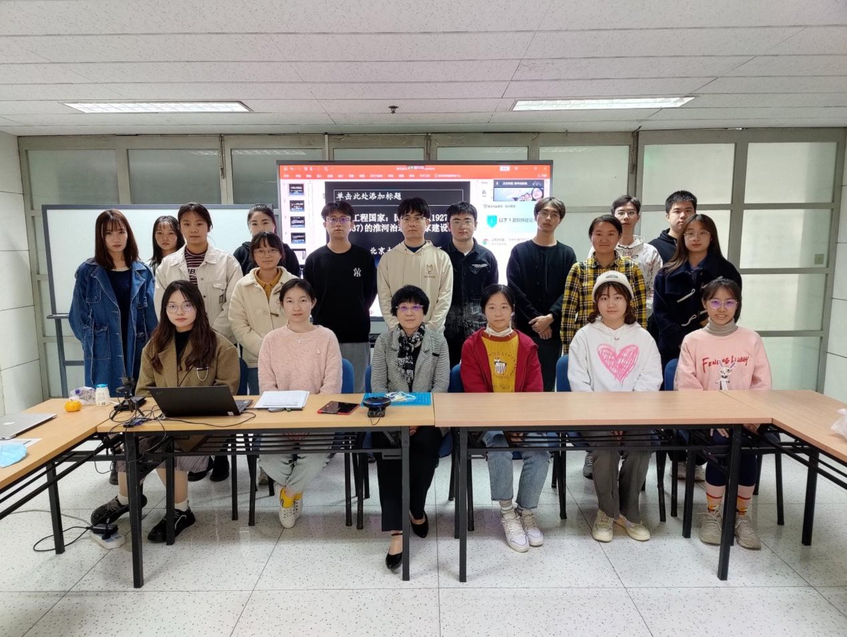 最后,金老师引导大家思考为什么新中国在当时仍很落后的条件下,在1950-1954年能够成功完成淮河治理的关键工程。同学们在讨论中认为,这是因为中国共产党具备强大的动员能力和集中统一的领导。金老师肯定了同学们的发言,并以原国民党华北“剿总”司令、国民党高级将领起义人员、新中国首任水利部长傅作义对治淮成功的感慨为例,说明为人民而治淮的理念以及中国人民对新政权的信任、对新生活的希望是成功治理淮河的深层原因,这也是“工程式”治理的一个经典案例。