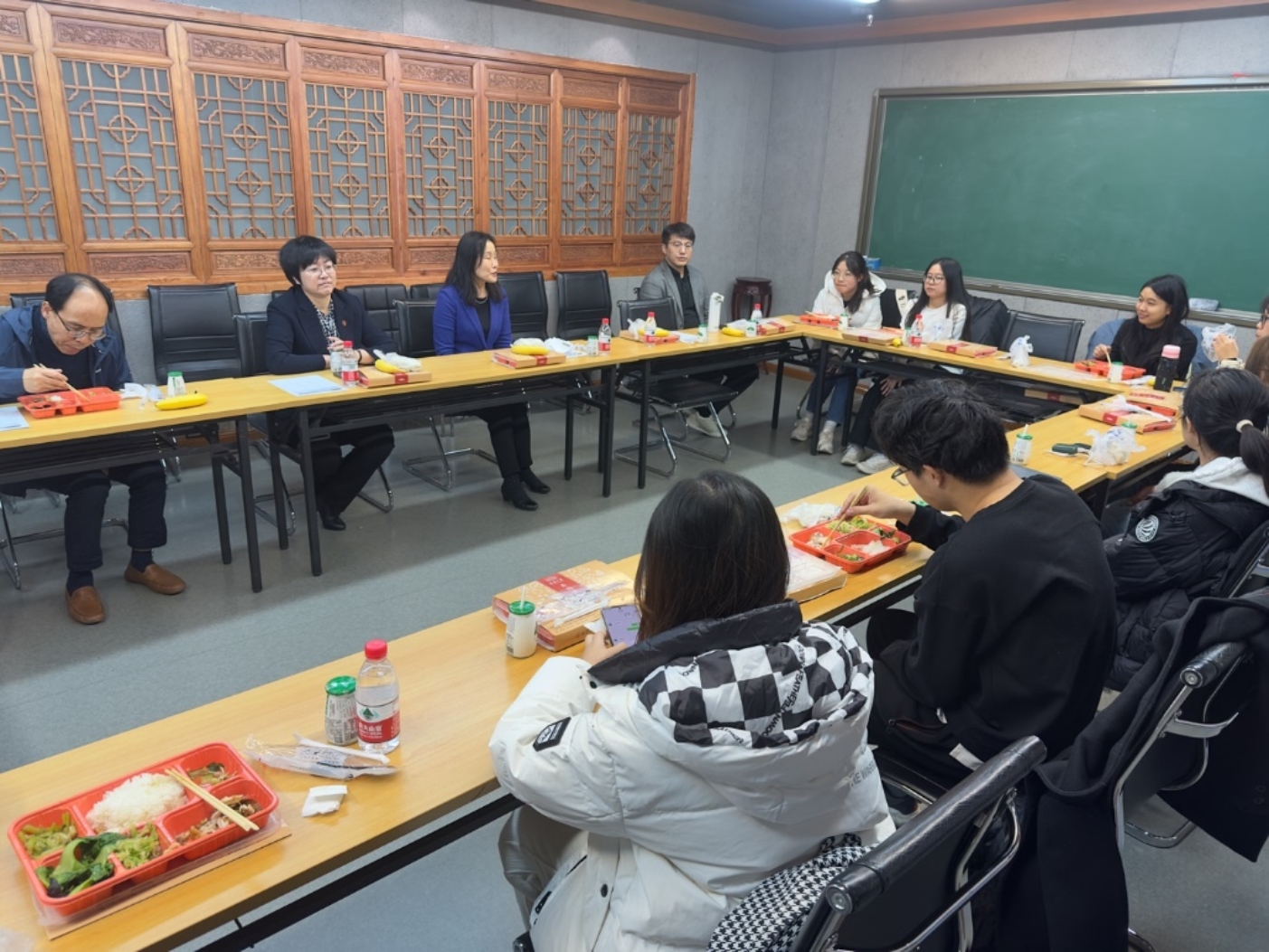 11月15日中午,本学期第三期本科生导师组座谈会在学院241会议室举行。王丽萍、严洁、刘霖、白彦、王镝等五位老师和来自2021级、2022级、2023级的10名本科同学共进午餐,就同学们关心的问题、学习中的困惑进行了解答和交流。本次座谈会由导师组组长王丽萍老师主持。