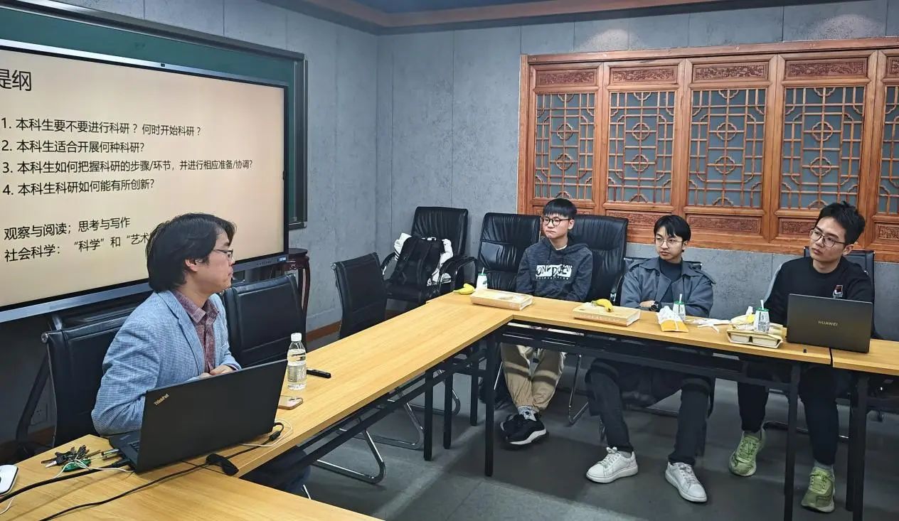 刘老师鼓励同学们将科研思维贯穿于学习过程,不要僵化地将二者对立;将研究引入课程学习,学而不思则罔,研究性的学习才是真学习。无论完成毕业论文、继续学术深造还是开启职业生涯,通过科学研究获得的历练和素质能力提升都是提升个人竞争力的重要途径。在智能时代,竞争力不再体现在基础知识的掌握上,科研创新能力的重要性愈发凸显。同时,对于本科生而言,科研尝试也是一种重要的自我探索渠道。“亲口尝梨知酸甜”,面对丰富而可能迷茫的职业方向选择,最好的获取实际信息从而进行明智判断的方式便是亲身体验,通过深入的科研实践、揭开科研的面纱,同学们才能更好地了解学术研究这条道路是否如自己所想,并且人有时也正是在专业性的实践和持续的正反馈中燃起了对特定领域的兴趣。