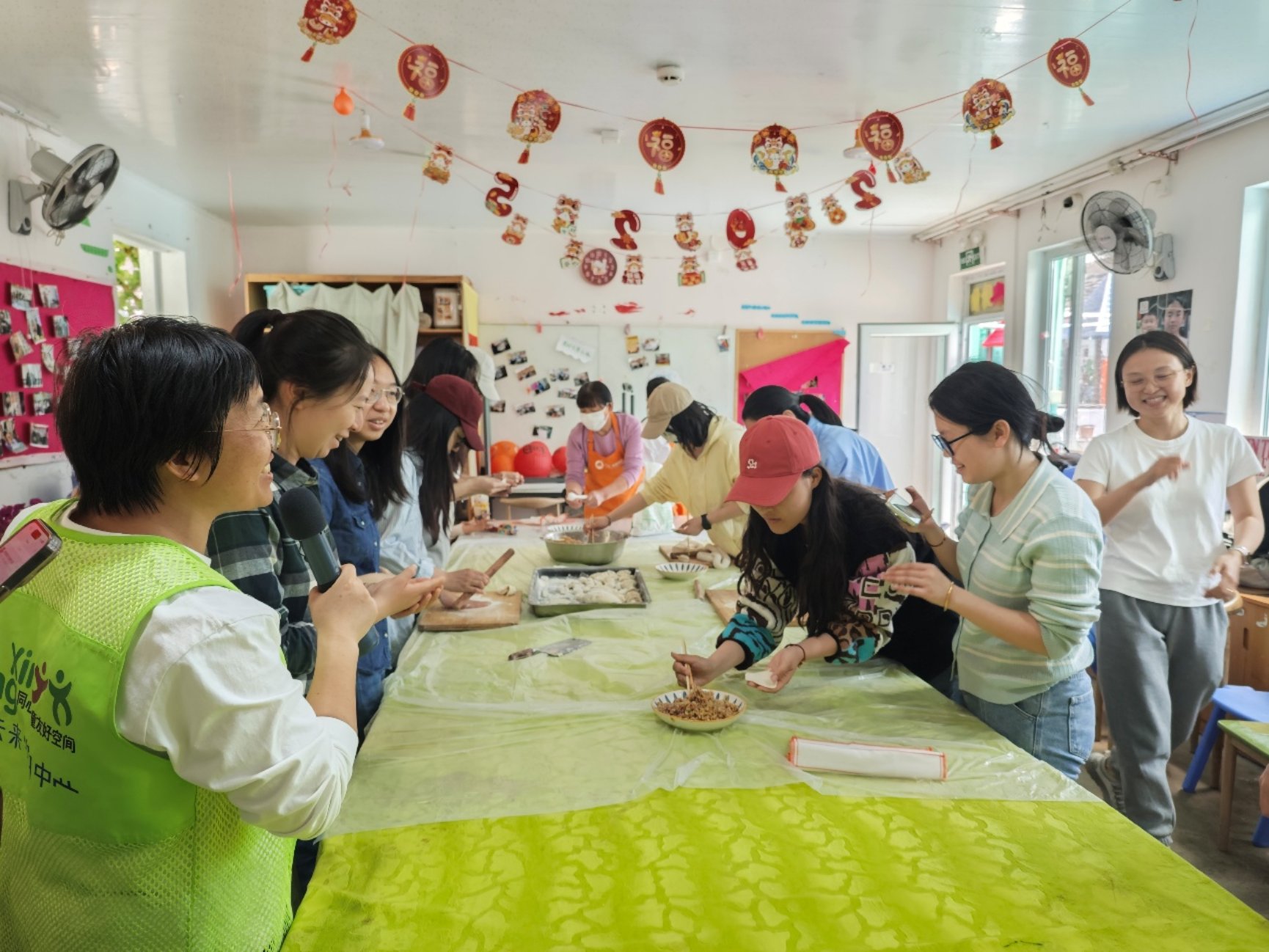 参访过程中,师生们与皮村志愿者及在校学生共同参与了包饺子活动。在轻松愉快的氛围中,大家围绕志愿活动的组织难点、非营利组织的资源整合等问题展开交流。同学们亲身感受到,皮村的志愿文化并非单纯的单向付出,而是通过文学创作、艺术表达、社区服务等多元形式,形成了打工群体自我赋能与社区共治的良性循环。这种“以文化人、以志愿聚心”的实践模式,让同学们对非营利组织的社会价值有了更立体的认知。