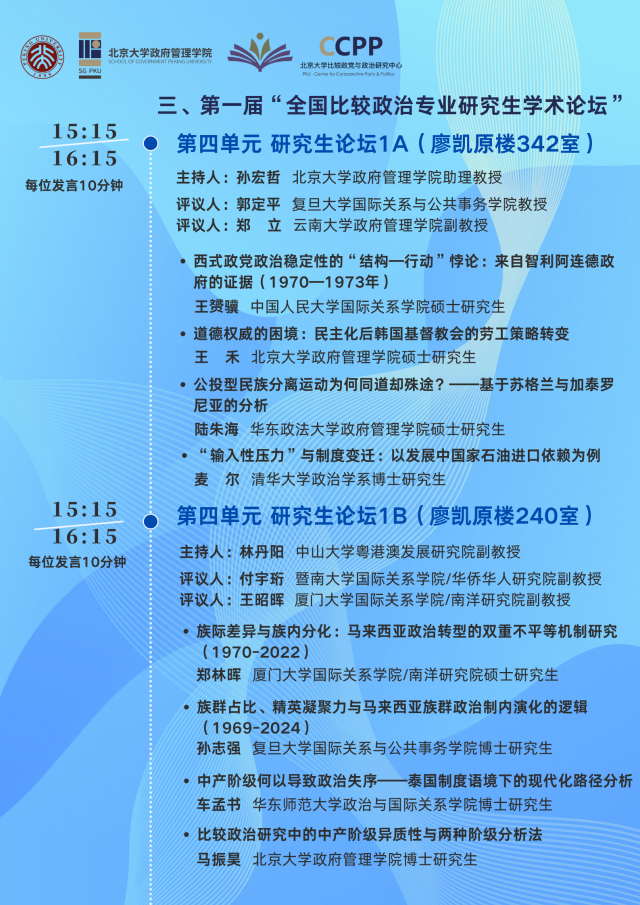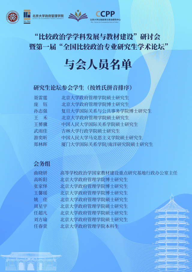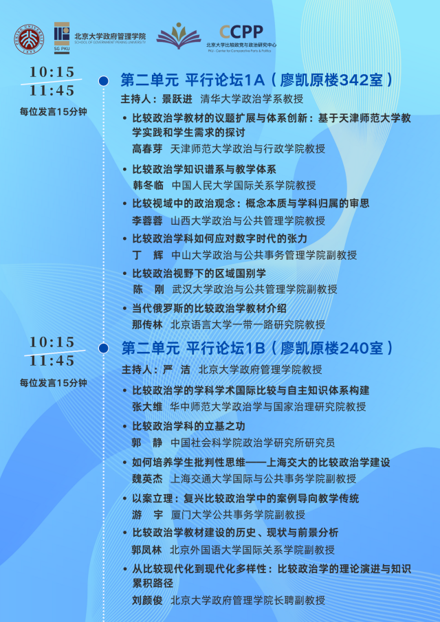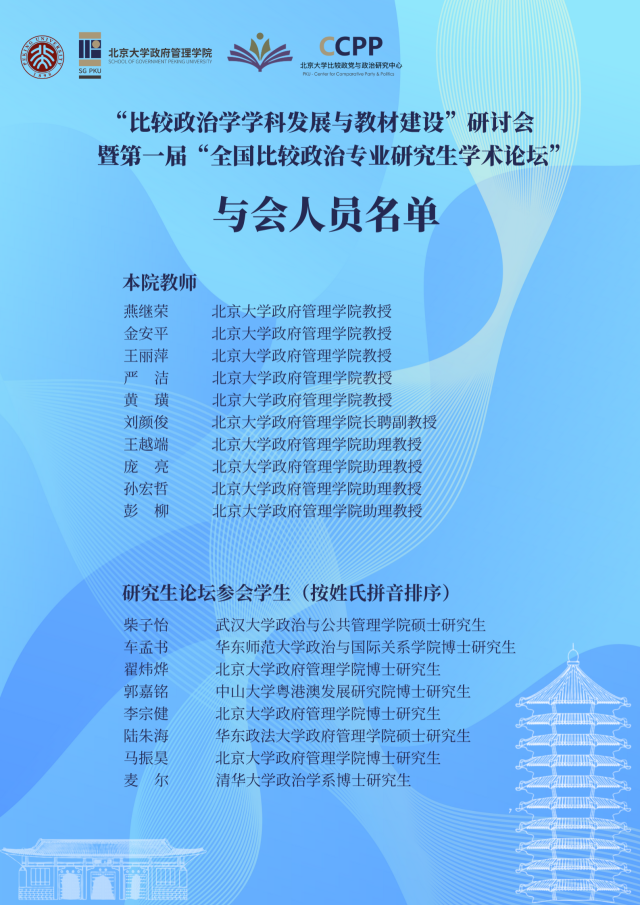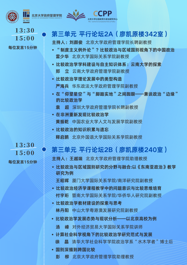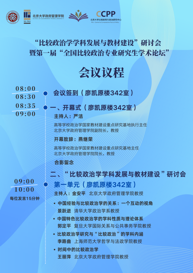 “比较政治学学科发展与教材建设”研讨会暨第一届“全国比较政治专业研究生学术论坛” 会议议程