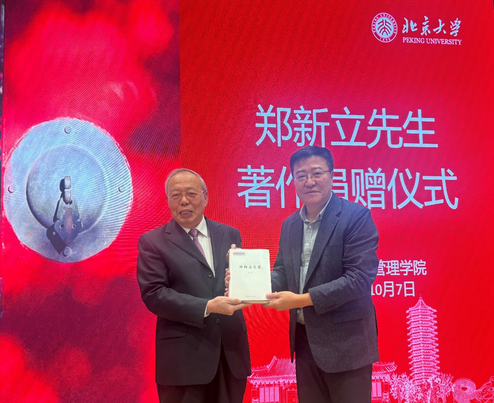 2025年10月7日,应北京大学政府管理学院邀请,中央政策研究室原副主任郑新立以《未来五年经济走势与战略机遇》为题进行讲座,并向学院捐赠《郑新立文集》丛书。政府管理学院院长燕继荣、副院长黄璜出席活动。