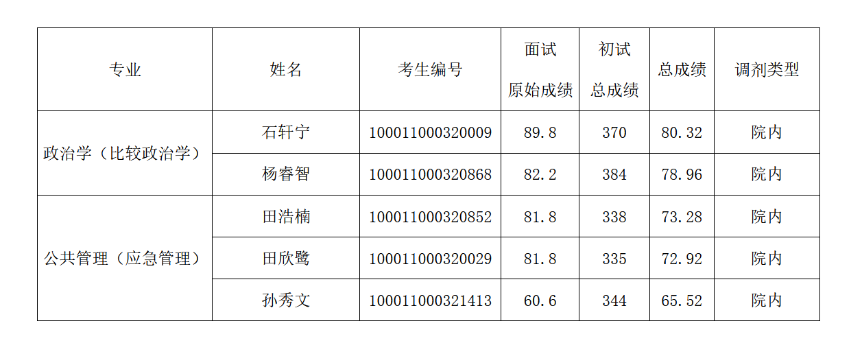 北京大学政府管理学院2021年硕士研究生招生调剂总成绩(学术型)