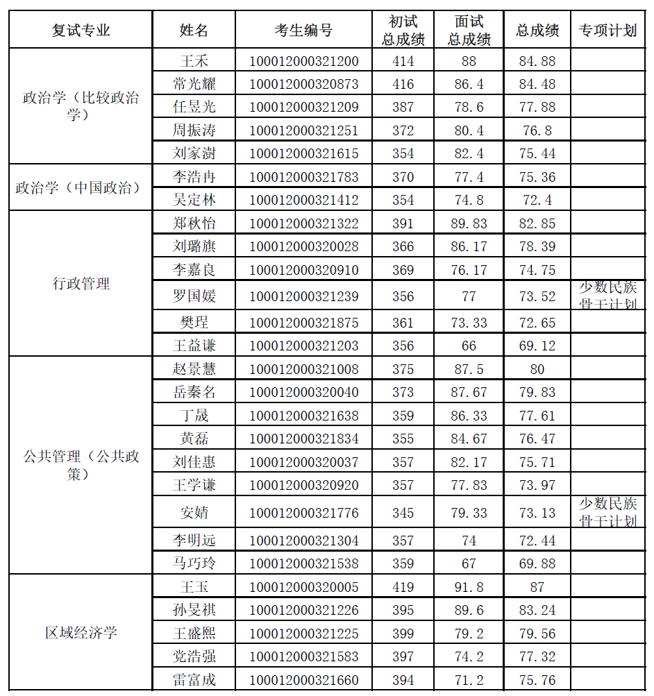 北京大学政府管理学院2022年硕士研究生招生总成绩(全国统考)