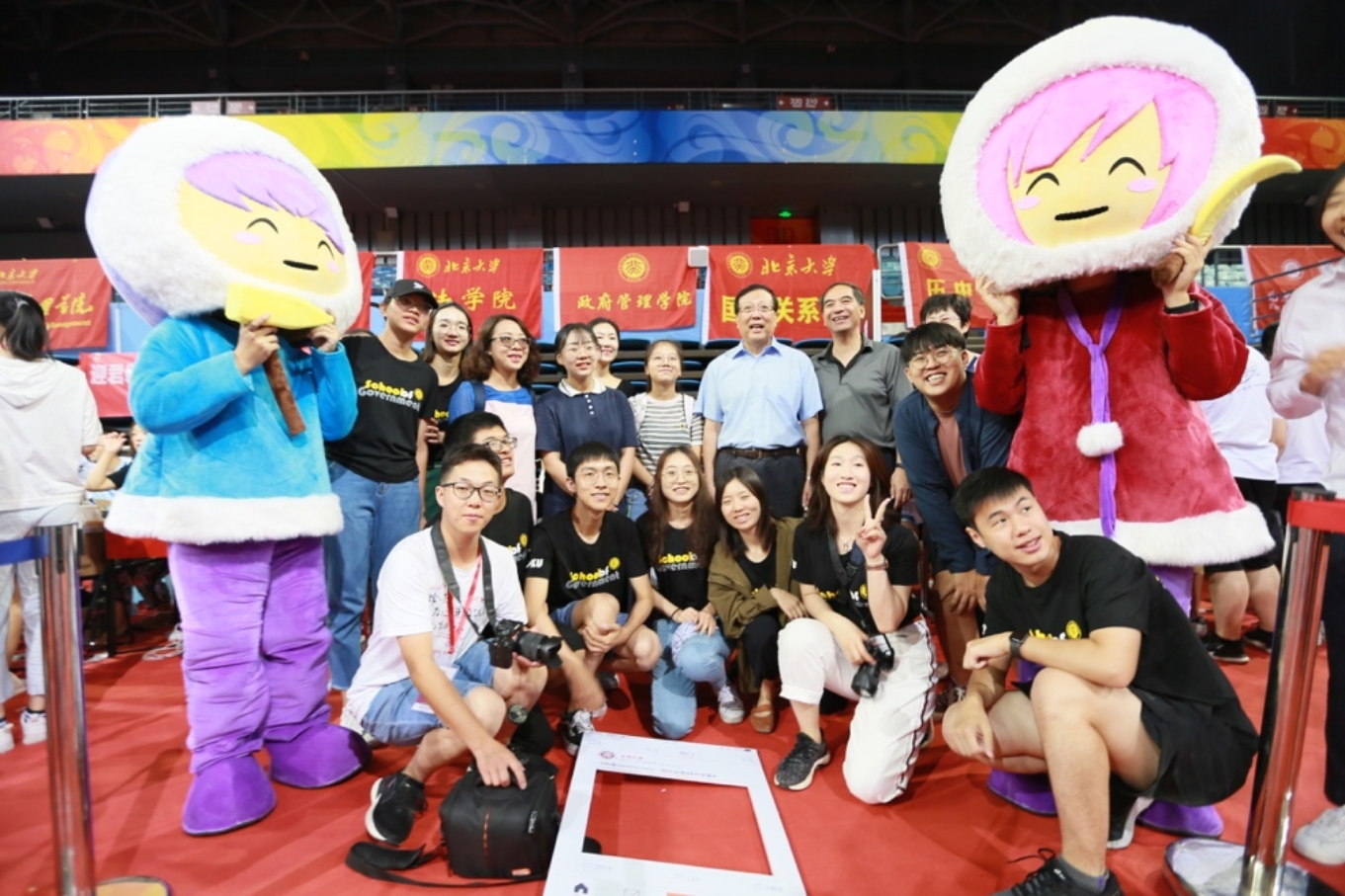 北京大学校长郝平、党委书记邱水平先后来到政管迎新点,与学院老师、新生和志愿者亲切交流,了解学院迎新情况,慰问现场工作人员。