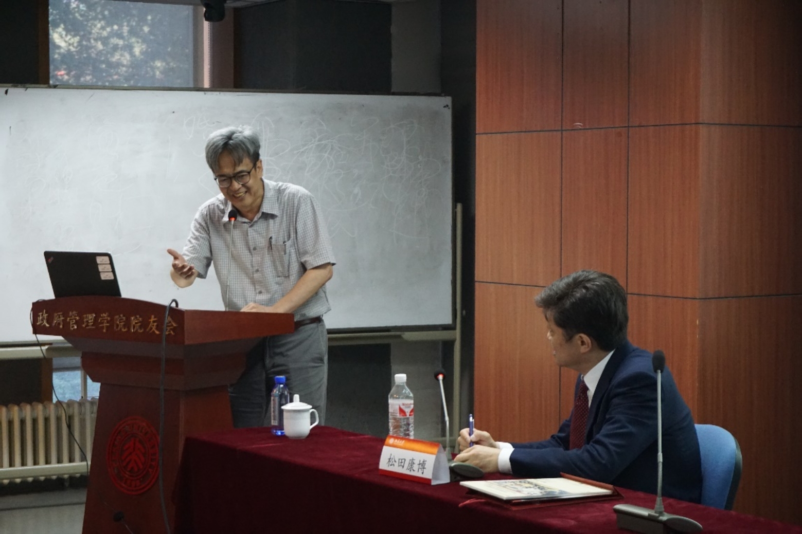 演讲结束后,政府管理学院白智立副教授进行评议。白老师首先回忆了赵宝煦先生关心提携晚辈学人之高风亮节,对学术基金的支持和松田老师的精彩演讲表示衷心感谢。白老师提出松田老师治学的严谨作风及将亲历政府实务运作与理论研究相交融的做法都值得大家学习。最后白老师就安倍施政之缺陷、日本安全保障会议之功效、日本精英与民众认知差距对政策选择之影响等问题与松田老师进行了深入探讨。
