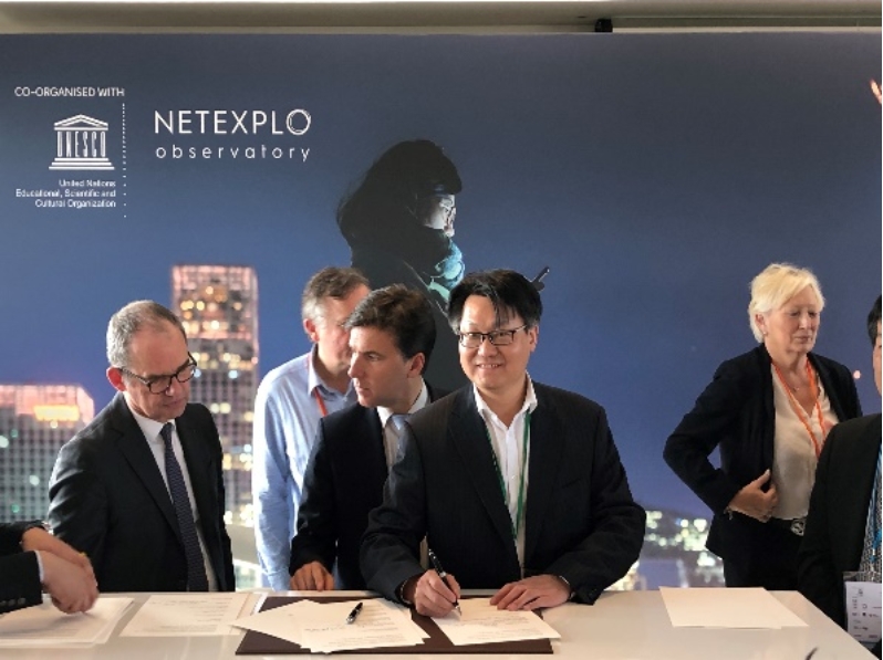 19日下午,智慧城市加速器项目的主要合作方北京大学、上海交通大学、欧洲商学院以及巴黎高科国立高等电信学校的代表同联合国教科文组织传播和信息助理总干事Moez Chakchouk先生一起,以对话的形式对NETEXPLO智慧城市加速器项目进行了交流。沈体雁教授作为北京大学代表发言,他表示:中国近年来的发展速度有目共睹,但同时也存在城市扩张太快,交通拥堵、环境污染严重等城市病,希望中国可以多多学习和借鉴国外先进的治理理念和技术手段,帮助中国更好的完成城镇化建设。