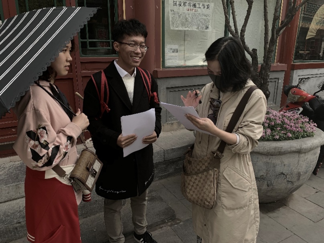 正值春光明媚之时,胡同里人来人往,游客往来如织。同学们在街头进行问卷采访的效率颇高,虽然过程中遭到拒访现象,但大家仍然鼓起勇气相互打劲。一些细心的游客还针对问卷上的问题提出了自己的看法和意见,使得初次进行社会调研的大一同学们收获良多。