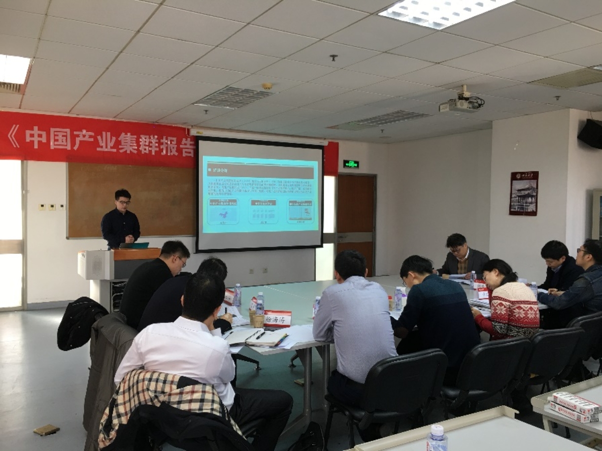 2019年1月19日上午9时,在廖凯原楼501会议室举办《中国产业集群研究报告2019》征求意见会(以下简称“会议”)。本次会议邀请到来自国家工信部、国家发改委、中国科学院、中国社科院、香港冰源资本、北达规划设计研究院、清华同衡规划设计研究院和源达证券投资咨询有限公司等各领域各行业的专家莅临指导。会议就课题组承担国家社会科学基金重大项目“中国产业集群地图系统(CCM)建设与应用研究”(项目批准号:17ZDA055)的阶段性成果《中国产业集群研究报告2019》(以下简称“报告”)进行报告和讨论,并对中国产业集群研究下一阶段的研究任务与目标进行分工安排。