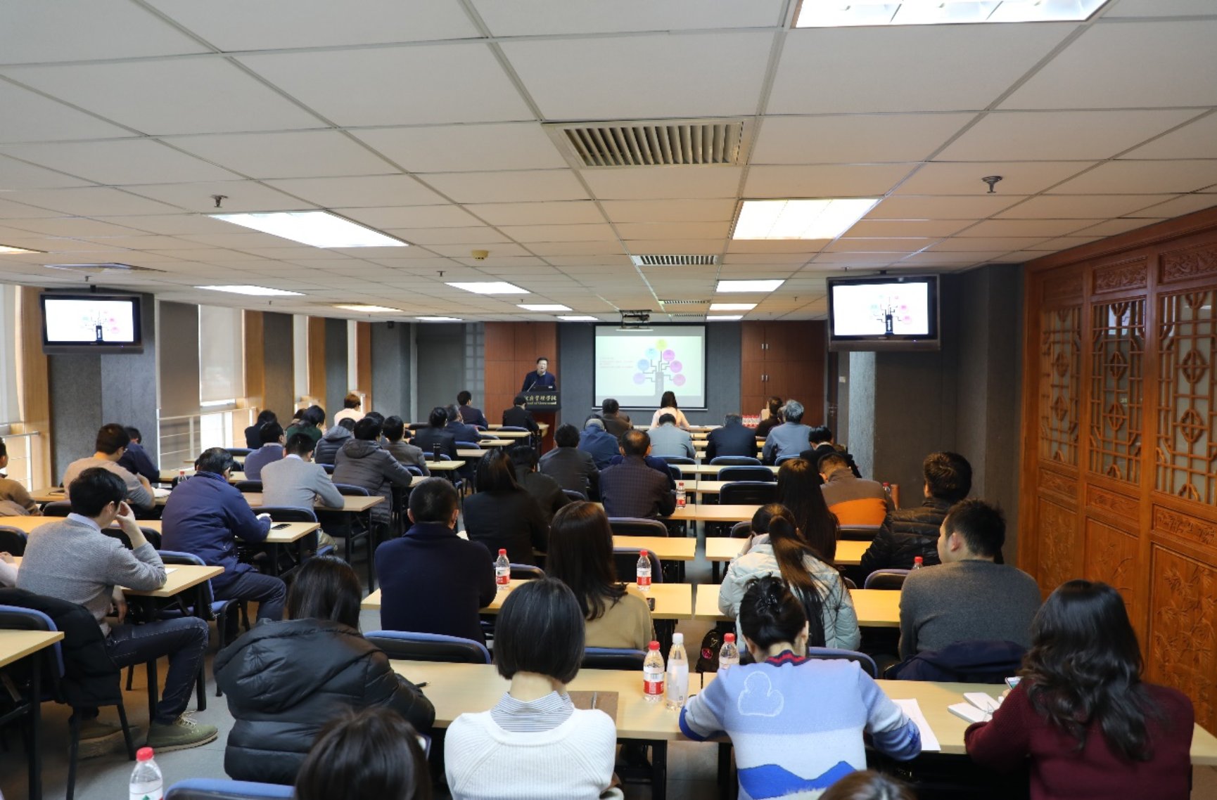 新年伊始, 2019年1月3日下午2时,学院全体教职工大会在廖凯原楼207宁肯教室召开。院长俞可平、常务副院长燕继荣、党委书记李海燕等学院党政班子成员,教师、博士后及行政人员70余人出席会议。大会由党委书记李海燕主持。