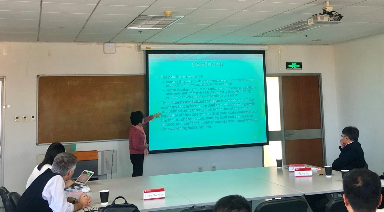 第二位发言的Rebecca Chiu(赵丽霞)教授的报告题目是“中国社会主义市场经济条件下的城市与住房治理”。她在报告中通过比较深圳及香港住房问题并结合香港和深圳的数据,指出深圳的住房问题,由于处于发展中国家,发展中地区在房屋生产上更社会化然而在消费上社会化因素减弱;城市发展可能是为了满足政治需求,而城市发展,经济发展则是通过地区扩大而实现的。因此中国的社会主义市场化有利于经济增长和政治目标的实现。
