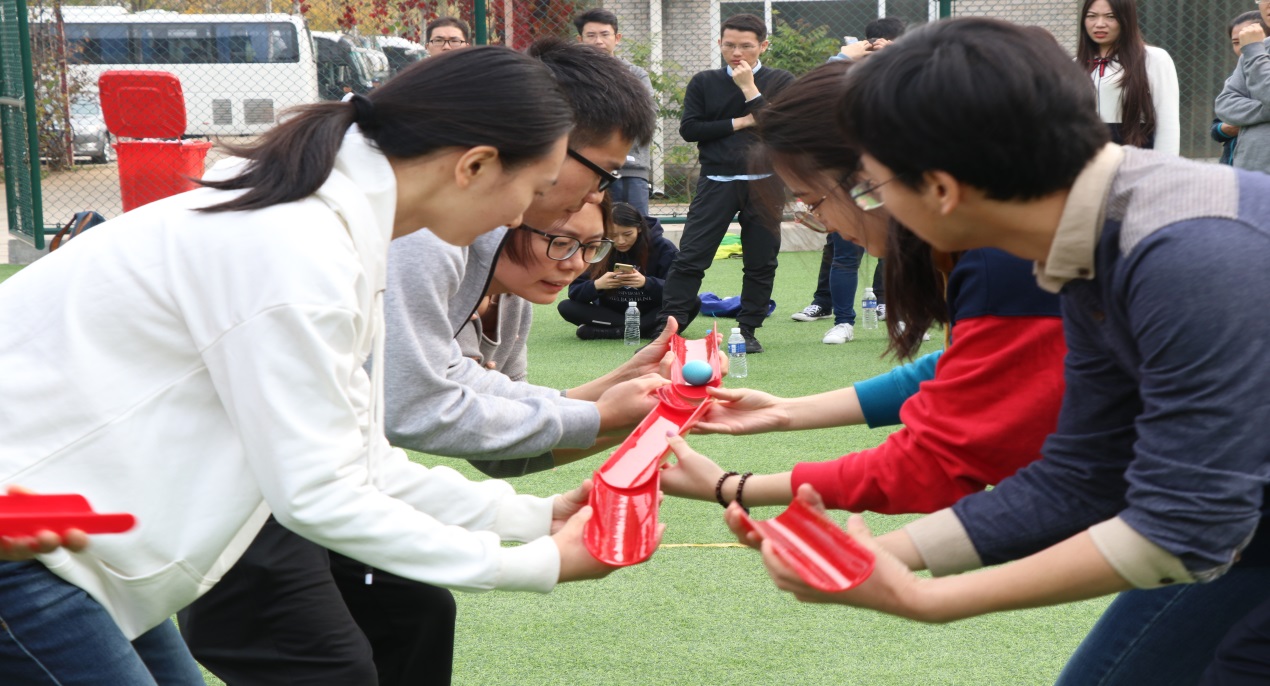 在“不倒森林”、“巧抛彩球”、“诺亚方舟”等游戏环节,各个团队通力合作,不断刷新纪录;在最后的“能量传输”挑战中,同学们最终获得了5秒40的成绩,纷纷感叹选择正确方法和团结协作的重要性。
