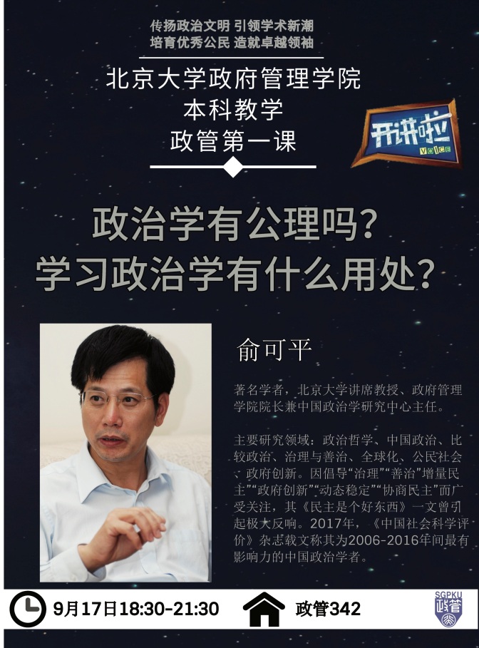 俞可平院长领衔开讲本科教学“政管第一课”