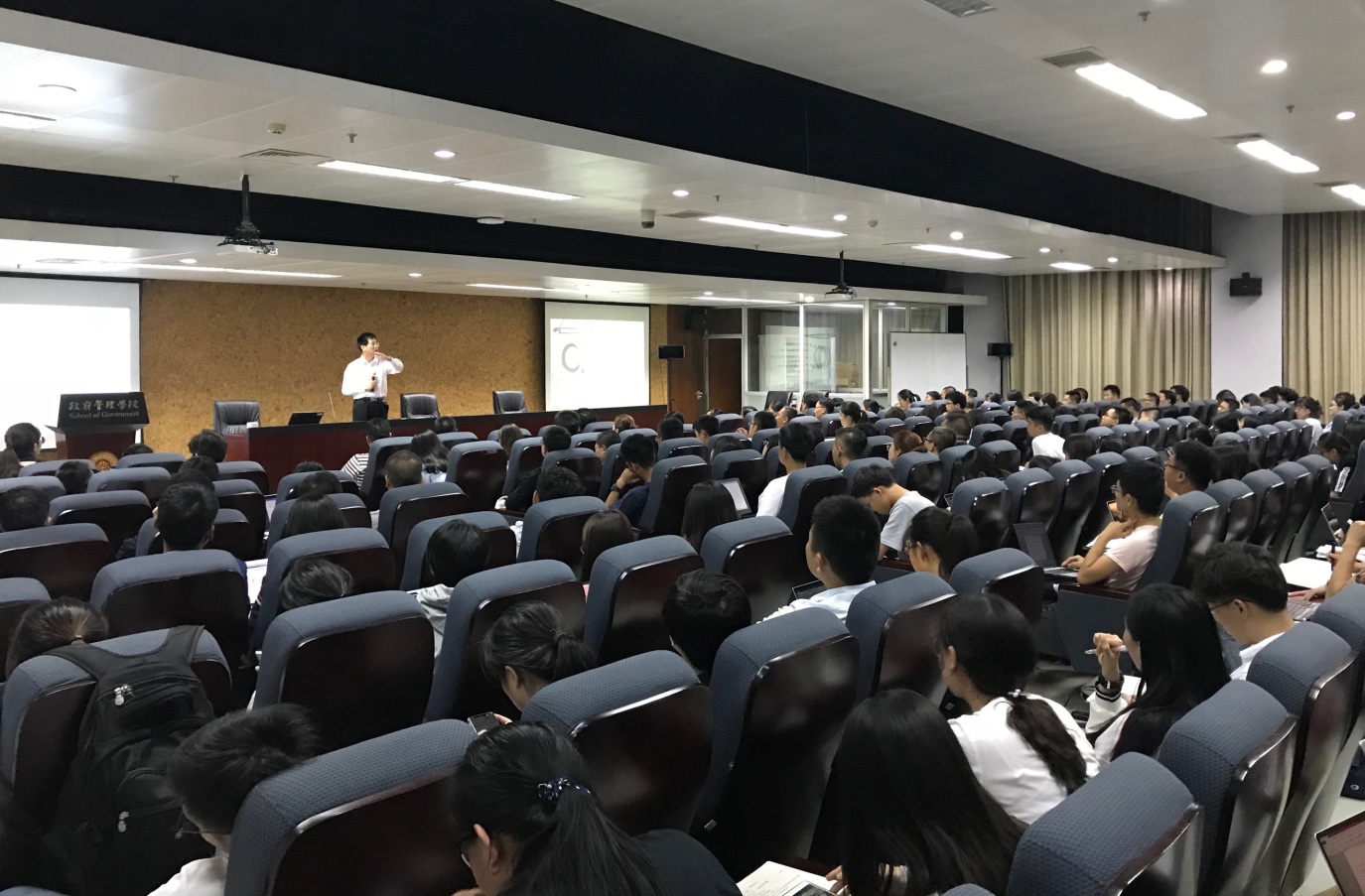 2018年9月17日晚,2018-2019学年本科教学“政管第一课”系列讲座在政府管理学院342室揭开帷幕。作为第一位主讲教师,院长俞可平以“政治学的公理与功用”为题,给同学们上了一堂既生动又深刻的“政治课”。参加“政管第一课”的既有刚入学的“新政管人”,也有选修“政治学前沿”的同学,更有来自全校其他院系的学生,整个教室座无虚席,洋溢着新学期同学们饱满的热情和对知识的渴望。