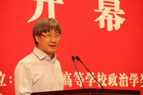 王浦劬致辞 开幕式主题发言环节由朱光磊教授主持。北京大学俞可平、贾庆国教授,中国人民大学陈岳教授,清华大学韩冬雪教授,中国政法大学杨阳教授,北京师范大学施雪华教授等6位承办单位的院系负责人分别就各自学校政治学类专业的办学基本情况和经验做了介绍。