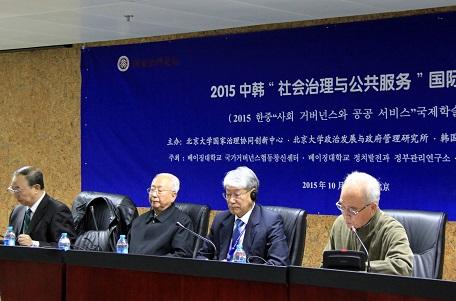 2015年10月24日,国家治理论坛?2015中韩“社会治理与公共服务”国际研讨会在北京大学隆重举办,来自北京大学、国家行政学院、北京航空航天大学、首都师范大学及韩国成均馆大学、世宗大学的十余位专家学者发表了主题演讲。