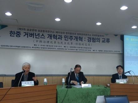 2014年12月4日,北京大学政府管理与政治发展研究所、北京大学?复旦大学?吉林大学?中山大学国家治理协同创新中心与韩国成均馆大学成均中国研究所共同举办的第九次年度学术会议暨国家治理论坛“中韩治理改革与民主改革:经验的交流”研讨会在韩国首尔举办,北京大学政治发展与政府管理研究所所长、北京大学国家治理协同创新中心主任王浦劬教授一行参加会议,并对首尔市政府进行了访问。