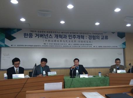 在民主改革专题中,张长东博士和段德敏博士作了“直接选举与基层民主”、“民主之中国范式的可能性”的报告。成均馆大学政治外交学系的金飞焕教授和首尔国立大学的赵英男教授分别做了“新民主还是优质民主”和“中国政府‘法治’进程”的报告。报告会后,主讲人与与会师生进行了热烈的讨论和交流。
