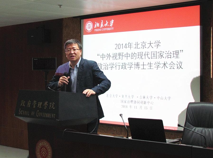 2014年11月15日,“中外视野中的现代国家治理”2014年政治学行政学全国博士生会议在北京大学政府管理学院举行。本次会议由北京大学研究生院“研究生教育创新计划”资助,由北京大学政府管理学院和北京大学?复旦大学?吉林大学?中山大学国家治理协同创新中心共同主办。来自北京大学、清华大学、中国人民大学、复旦大学、吉林大学、中山大学、南开大学、武汉大学、厦门大学等全国各大高校院所的30余名博士生和青年学者参与了研讨会。本次会议面向全国征稿,论文经过严格的程序筛选,体现了在国家治理理论和实践研究方面的高水平。
