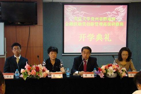 2014年9月15日上午,贵州省黔南州金融投融资创新管理高级研修班开学典礼在学院廖凯原楼207教室顺利召开。政府管理学院常务副院长傅军教授、黔南州政府副秘书长、金融办桑丽主任、政府管理学院院长助理郁俊莉教授及研修班全体学员出席开学典礼。典礼由政府管理学院团委常务副书记王怀乐主持。
