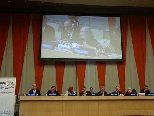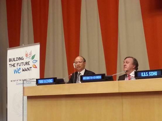 2014年5月27日-29日,联合国经济和社会理事会在美国纽约联合国总部举行召开主题为“可持续城镇化”的综合会议。会议由联合国经社理事会副主席Vladimir Drobnjak主持,联合国秘书长潘基文出席开幕式并致开幕辞。卢旺达总统、哥伦比亚副总统,联合国城市与气候变化的特使,克罗地亚、加纳等国首相、部长,伊斯坦布尔、约翰内斯堡、金斯顿(牙买加)、林雪平(瑞典)、莫罗戈罗(坦桑尼亚)、巴黎、维多利亚(加拿大)等城市市长,联合国人居署、环境规划署、教科文组织、世界银行等重要部门的主要官员,非洲联盟委员会代表,非政府组织以及芝加哥大学思想委员会共同主席等学术界重要代表,参加了会议。我校政府管理学院杨开忠教授作为联合国邀请的国内唯一代表出席了此次会议,并在第三阶段会上发表题为《中国城镇化模式的转变》的演讲。会上,杨开忠教授讲述了改革开放以来中国城镇化的传统“故事”,系统阐述了新型城镇化“新”在何处的问题,以及新型城镇化改革的优先领域和路径。