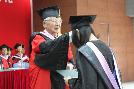 罗豪才为毕业生代表拨流苏、颁发学位证书