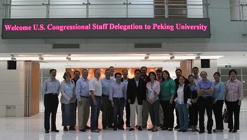 2012年5月12日晚6:30,美国参众议员办公室主任代表团一行14人访问北京大学政府管理学院,此次活动由北大政府管理学院、中国人民外交学会和北京哈佛校友会联合举办。北大政府管理学院常务副院长、北京哈佛校友会会长傅军教授主持会谈。