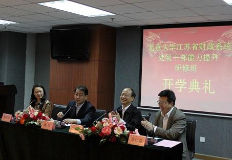4月24日上午,江苏省财政系统处级干部能力提升研修班开学典礼在廖凯原楼207教室举行。政府管理学院常务副院长傅军教授、院长助理郁俊莉副教授及江苏省财政厅副厅长江建平等40余名江苏省财政系统处级干部参加开学典礼。