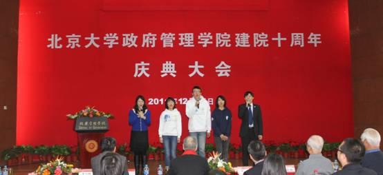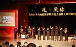 2011年12月23日,北京大学政府管理学院迎来了她的第十个生日。十年政管风雨路,十载硕果累累时。为庆祝学院建院十周年,政府管理学院于12月23日举办建院十周年庆典大会,并在当晚举行“政?爱你”――政府管理学院文化之夜暨十周年院庆晚会。