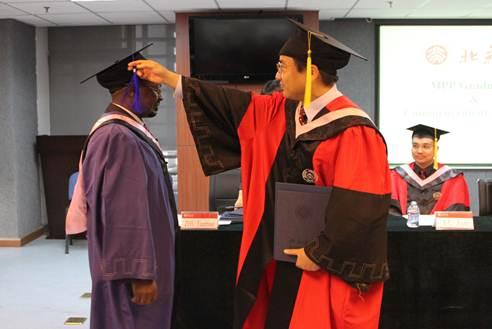2011年8月25日上午10点,在北京大学政府管理学院廖凯原楼206会议室举行了北京大学发展中国家高级行政人员公共政策硕士项目2010级毕业典礼。参加典礼的嘉宾有:北京大学政府管理学院常务副院长傅军教授,政府管理学院常志霄副教授,政府管理学院田凯副教授,商务部国际商务官员研修学院副院长邹传明先生,商务部国际商务官员研修学院援外培训联络办公室主任卢长明女士,北京大学研究生院培养办公室主任贾爱英女士,Mr. Hamidoune Hamidoullah Moiouya,科摩罗驻华大使馆参赞;Mr. Bieke Jamin,科特迪瓦驻华大使馆参赞;Ms. Hilaria Chibwana,马拉维驻华大使馆参赞;Mr. Emile Rwagasana,卢旺达共和国驻华大使馆一等秘书,毕业典礼由北京大学政府管理学院副院长朱天飚主持。