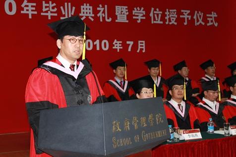 7月9日上午8:30,北京大学政府管理学院2010年毕业典礼暨学位授予仪式在廖凯原楼437会议厅举行。