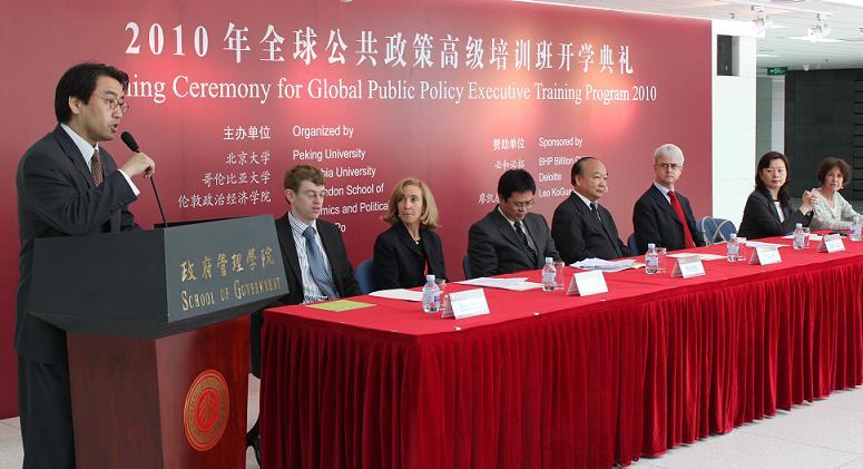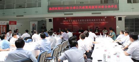 “全球公共政策高级培训项目” 第五期于2010年5月31日上午在政府管理学院廖凯原楼正式开班。中共中央组织部干部教育局副局长张家声、北京大学副校长李岩松出席了开幕仪式并致词,仪式由北京大学政府管理学院常务副院长傅军主持。
