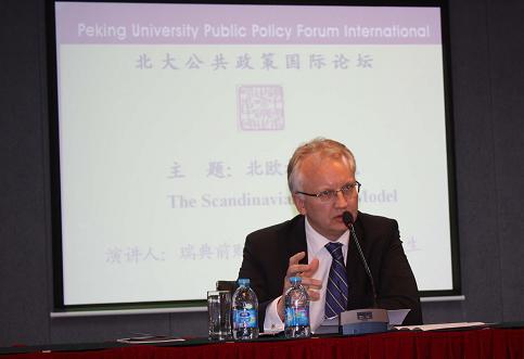 2010年5月19日瑞典前财政部长PÄR NUDER先生访问政府管理学院,并为北大公共政策国际论坛发表了主题为“北欧社会模式”的演讲。演讲由政府管理学院副院长朱天飚主持。