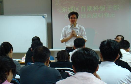 本期研修班共有五十余名来自东城区的科级干部参加研修。在为期两周的研修中,将学习绩效管理、危机管理、公共事务管理、政府管理、领导艺术等十余门精品课程。