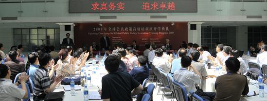 “全球公共政策高级培训项目”第四期于2009年6月1日上午在政府管理学院廖凯原楼正式开幕。北京大学副校长张国有,中组部干部教育局局长孙学玉分别代表北京大学和中组部出席了开幕仪式并致词。