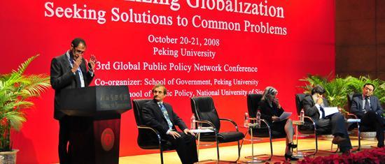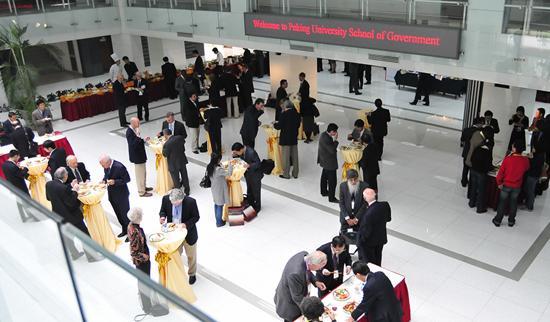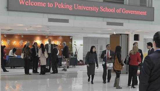 来自五大洲的各国参会人员在北京大学政府管理学院廖凯原楼大厅注册报到