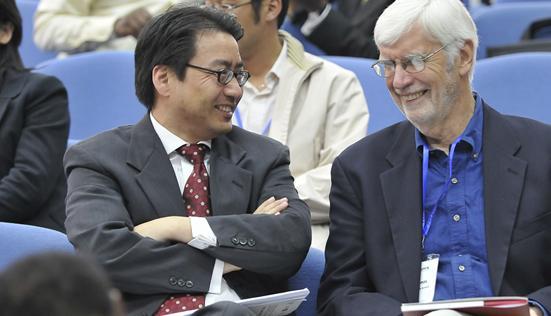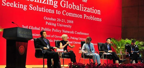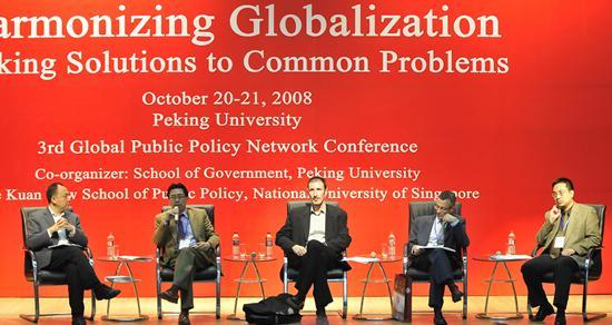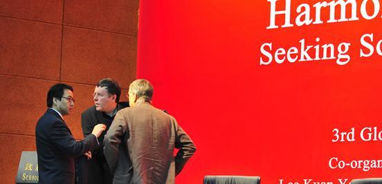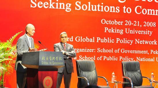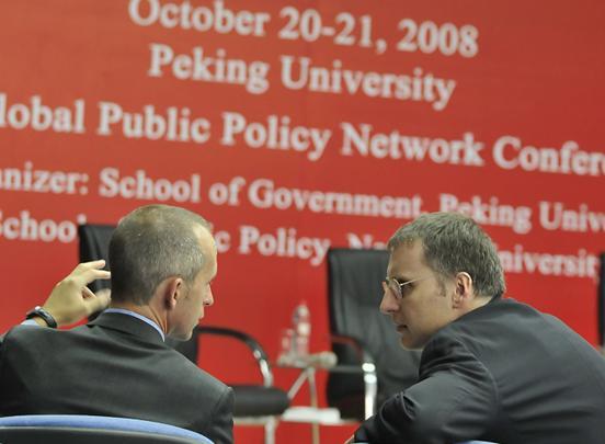 北京大学政府管理学院教授与哈佛大学肯尼迪政府学院教授台下开怀交谈