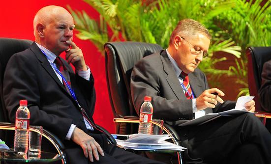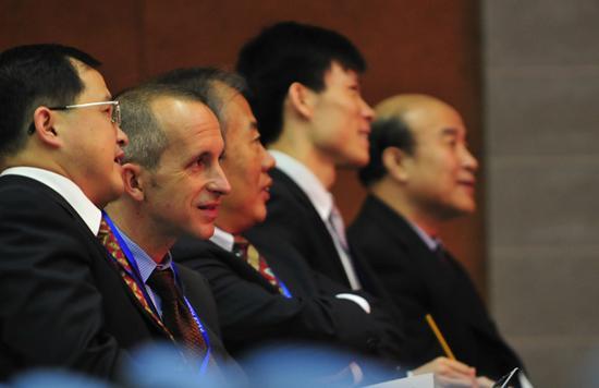 来自法国的大学校长(左)主持“能源与环境保护”论坛