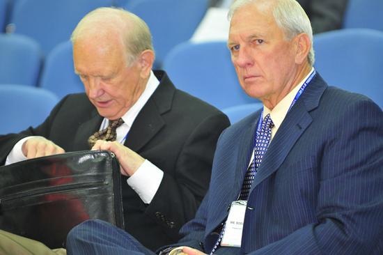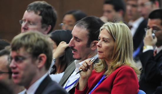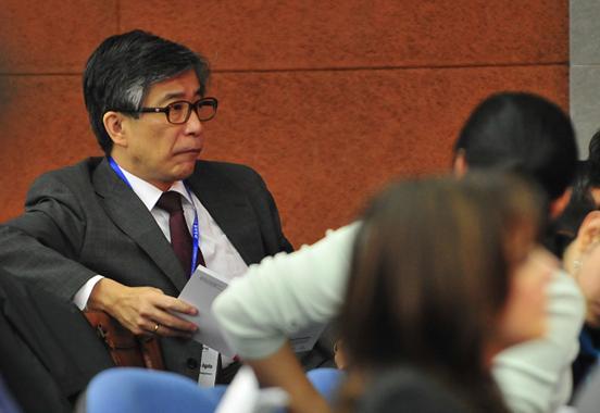 等待下一个分论坛的开始:是官员?是学者?也许两者都是,参会者中,这是经常的事