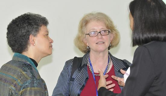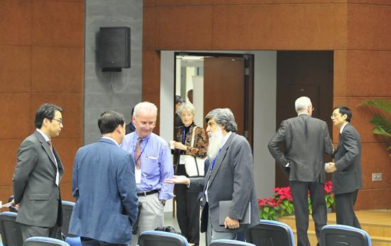 哥伦比亚大学和哈佛大学的学者在会场就座、交流、等待会议开始