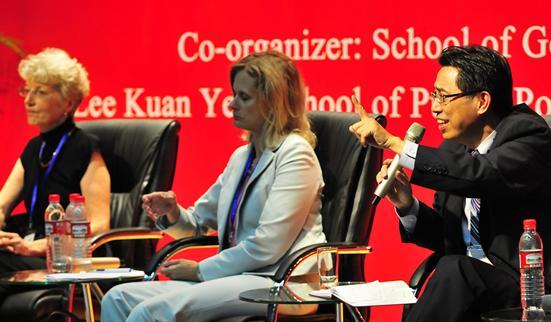 北京大学政府管理学院的外事助理与新加坡李光耀公共政策学院的同事切磋办会经验