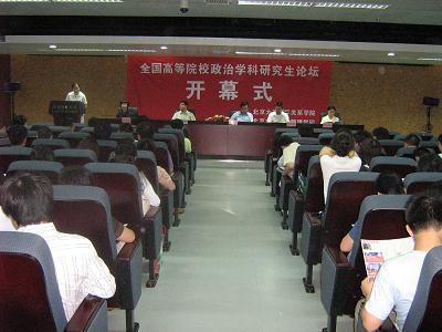 第六届全国政治学科研究生论坛于2007年5月26日在北京大学隆重举行。本届会议由北京大学政府管理学院、国际关系学院主办,设有两个分论坛。来自全国14个省、直辖市的27所院校、140余名师生齐聚燕园,就“政治发展与和谐社会”与“国际社会的核心价值观”两大主题进行深入研究与讨论。