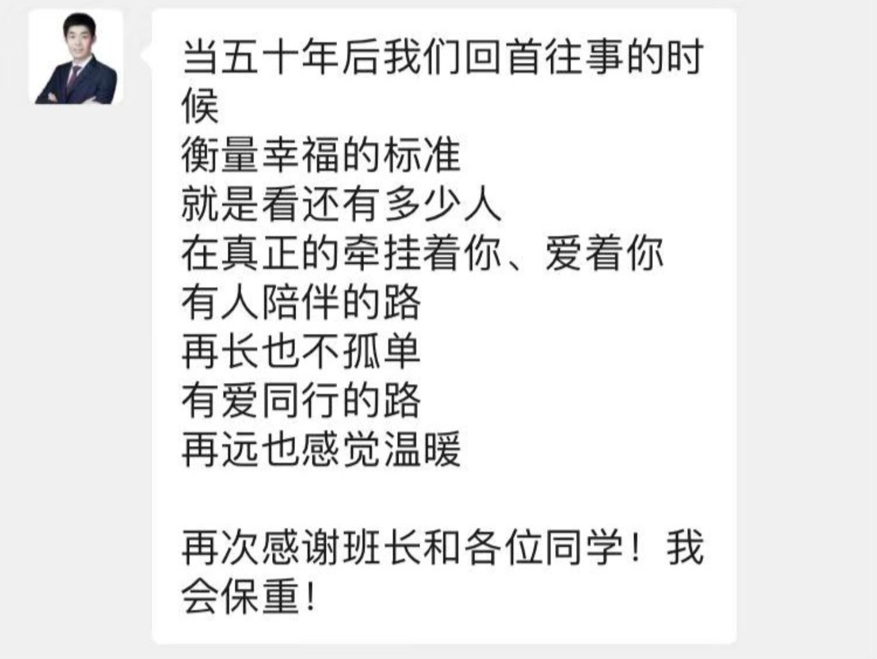王燕森院友回应班级同学们的鼓励与祝福