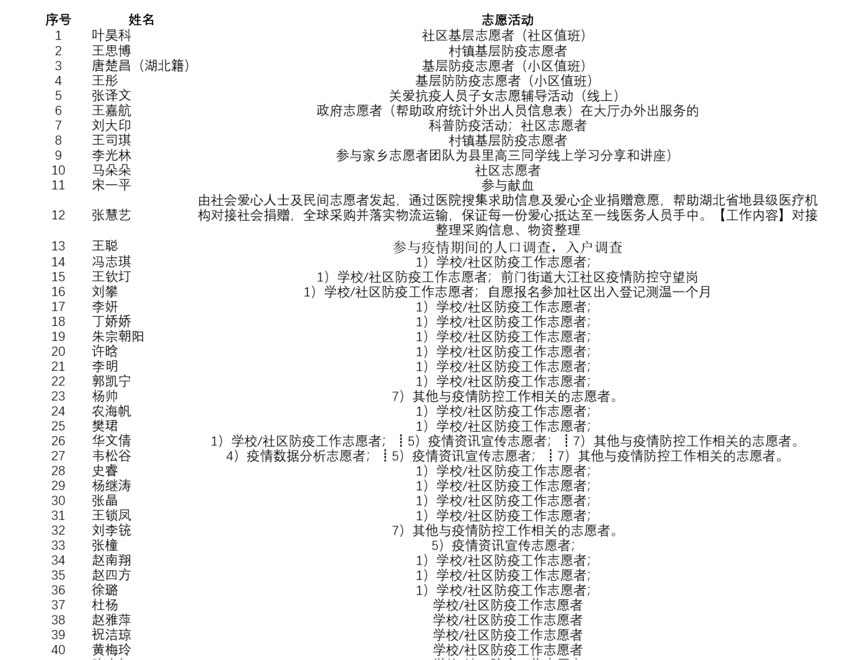 政府管理学院2019级本科生王思博主动前往当地村党支部和村民委员会询问志愿者招募的相关情况,承担了村口体温检测的工作。“工作从早上六点到晚上十二点分两班倒,除去中午回家吃饭的时间外,我都在志愿者的岗位上,总共持续了两星期。”除了王思博本人外,他的父亲是当地公交系统的一名职工,疫情期间也曾多次赶赴县城防疫一线,接送疑似新型冠状病毒感染肺炎病例。