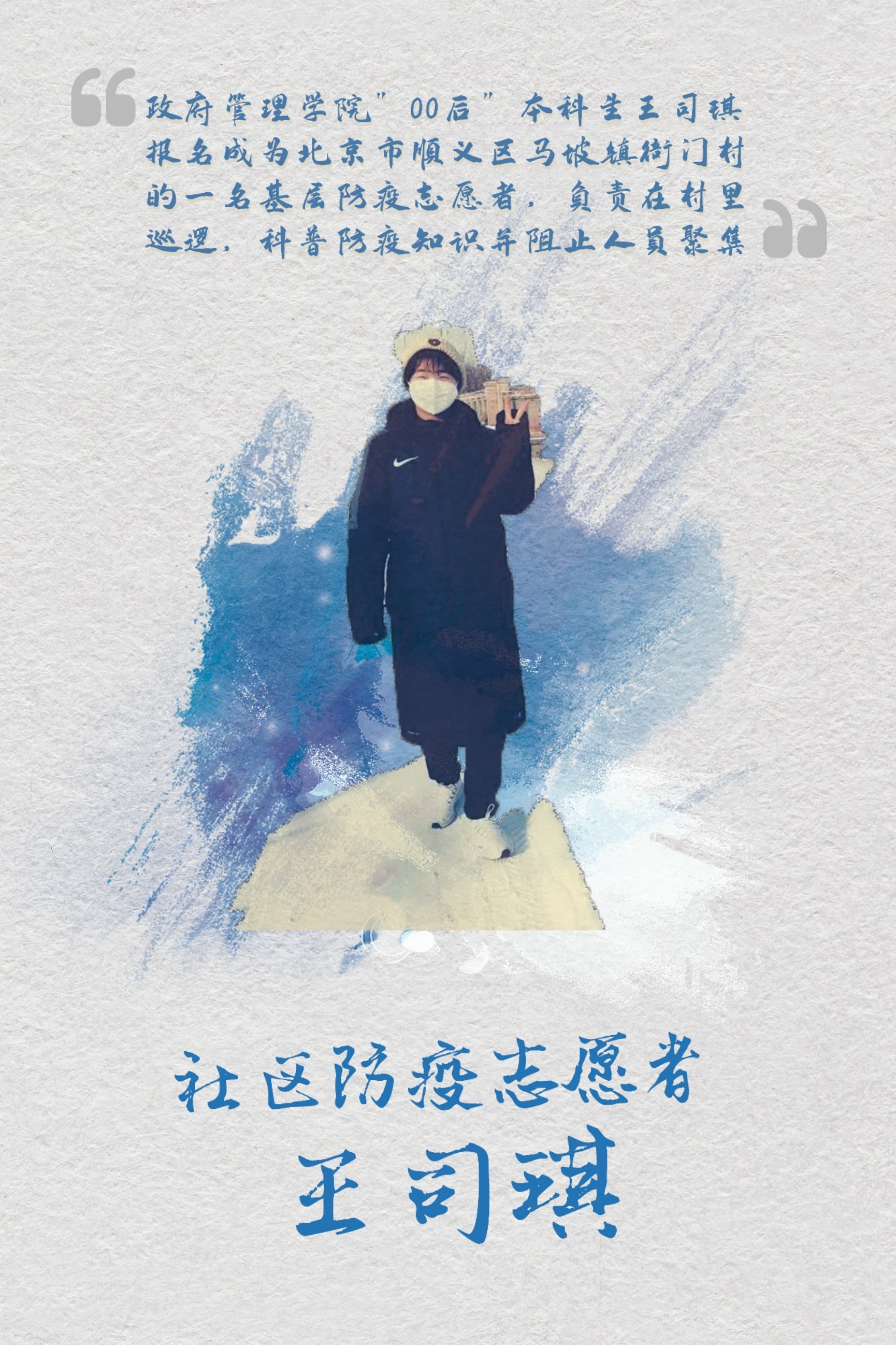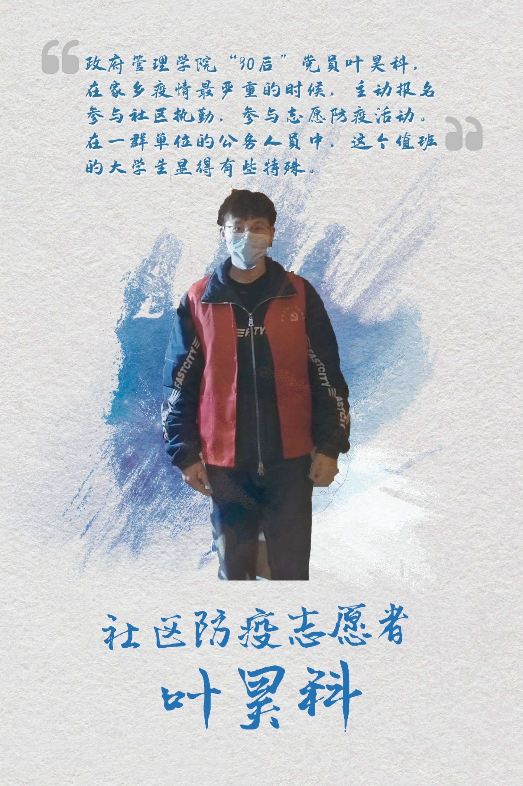 病毒无情人有情,奋战在最前沿的逆行者们义无反顾,筑起守护生命安全的坚强防线;坚守在风雨中的防疫人员昼夜不息,把好疫情隐患的出入关;我们身边也有这样的一群人,他们不仅是在学业上取得优异成绩的“学霸”,更是积极投身防疫洪流的志愿者,是用自己的方式奉献着、奋斗着的北大政管人。他们虽然年纪小,却用行动证明了自己是堪当大任的新时代青年人。