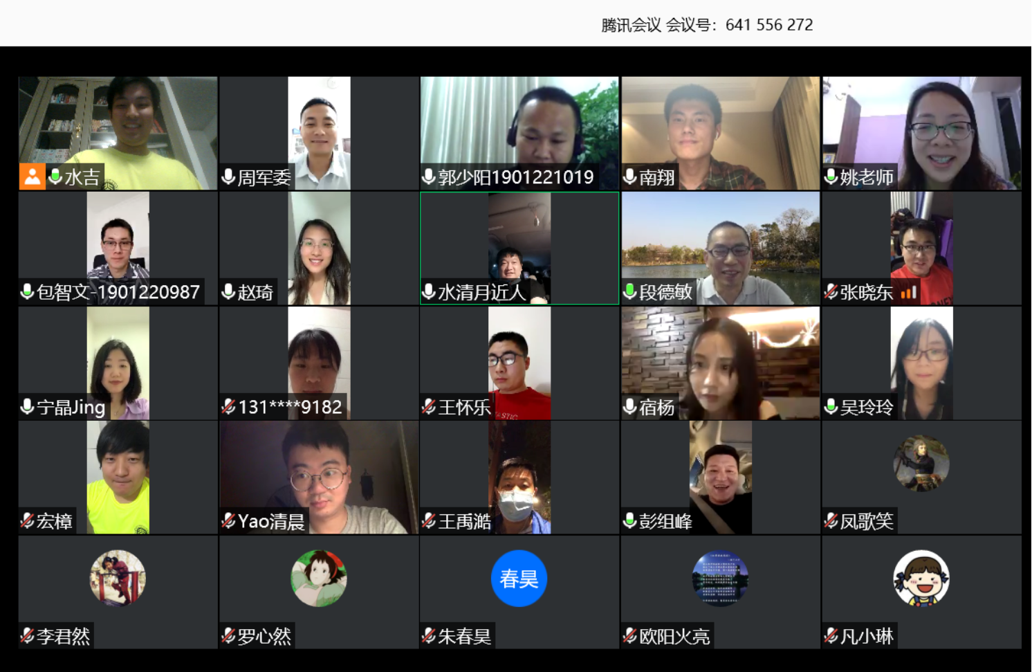 最后,姚静仪老师和段德敏老师对本次线上分享会议作以总结指导。姚老师认为,“哪有什么岁月静好,总有人替你负重前行”,如张晓东、周军委等兄弟姐妹肩负了守卫国家、安定人民福祉的重任,为你们直面这场无硝烟的战役,在五四青年节向你们致敬!段老师则在致敬一线抗疫人员的同时,充分肯定了17博党支部的工作,鼓励同学们在疫情期间努力做好学术工作,从不同角度支援国家防疫抗疫的工作。