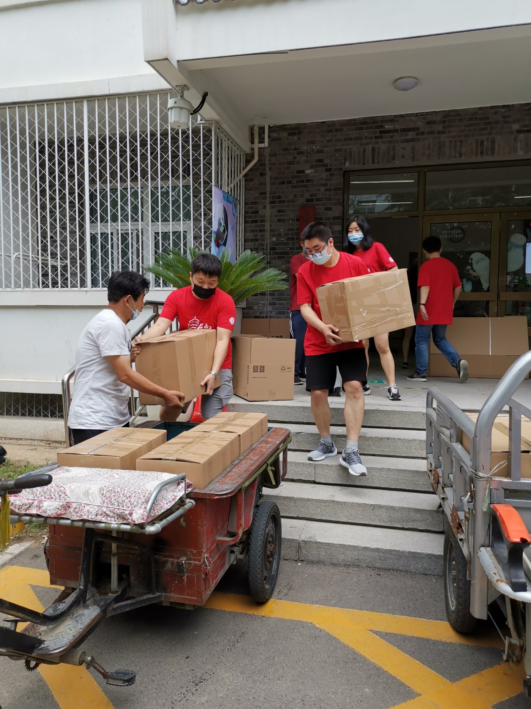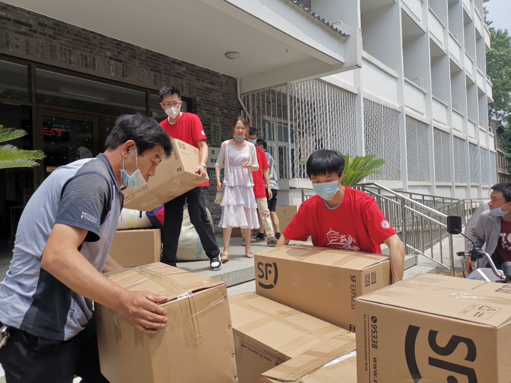 院党委副书记、副院长姚静仪老师,团委副书记谭卓立老师全天在宿舍楼协调统筹,帮助返校同学一起打包、搬运行李,调度运送行李的车辆。